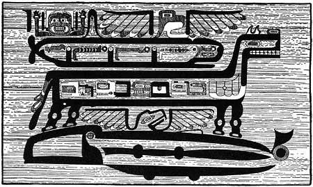 a killer whale surmounted by a second picture of the Thunder Bird,