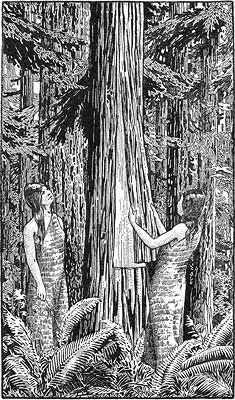 beach, and hiding their canoe beneath a giant spruce, they followed